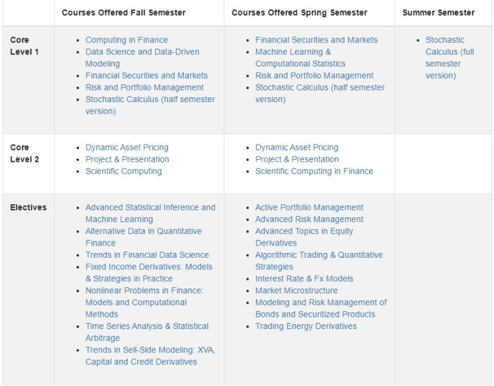 and Portfolio Management, Stochastic Calculus等,选修课如Time Series Analysis &