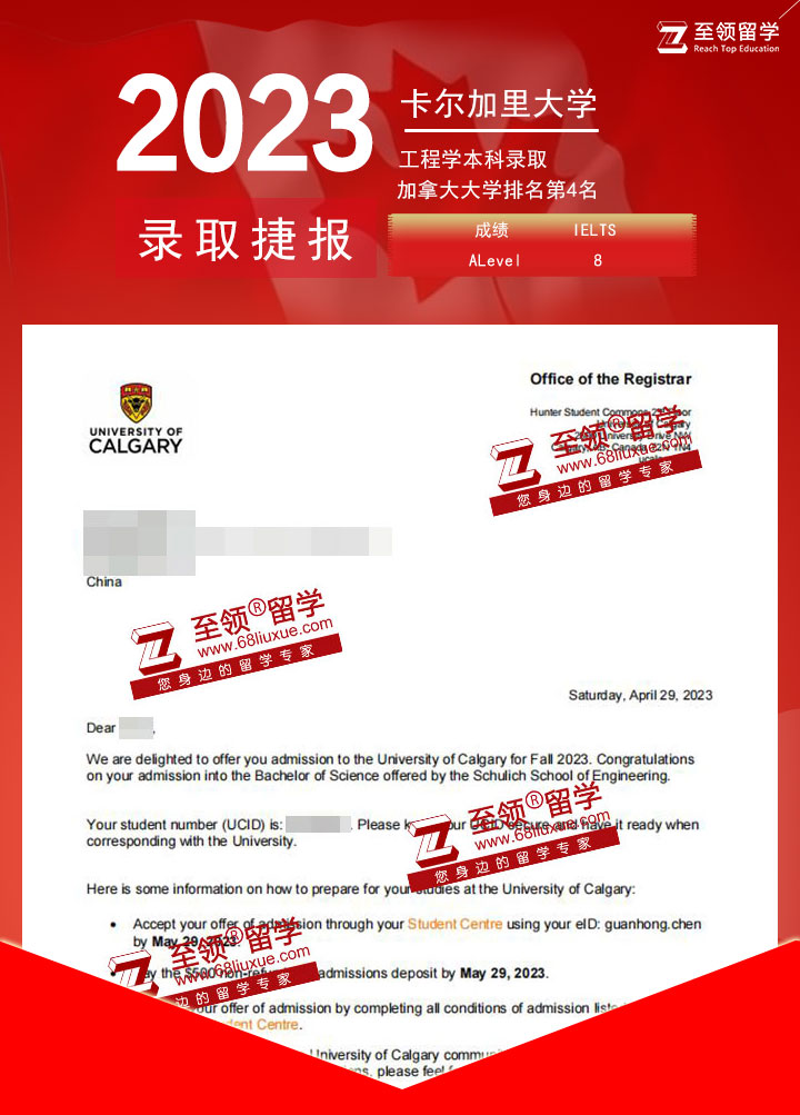 录取结果:University of Calgary,Bachelor of Science,Schulich School of Engineering 卡尔加里大学工程学本科录取