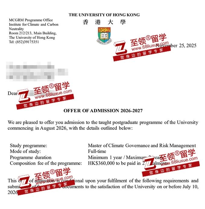 录取结果:香港大学,气候治理与风险管理硕士录取
