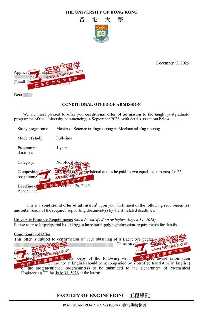 录取结果:香港大学,机械工程硕士录取