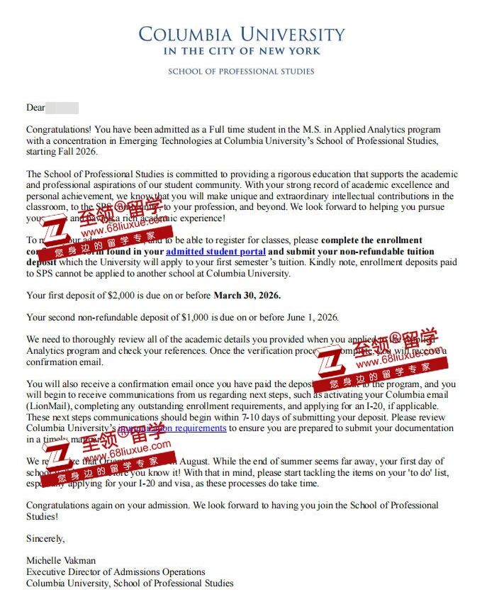 录取结果:哥伦比亚大学,应用分析硕士录取